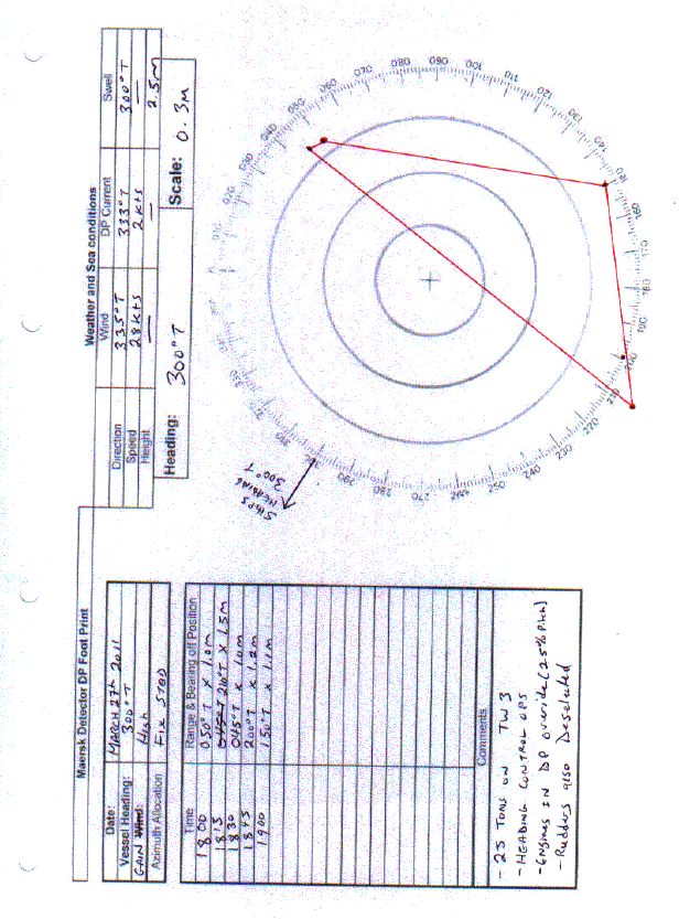 On the 04 and 05 December, a DP proving trial of the Maersk Detector was conducted in the waters off St. John's, NL. This trial was performed to test the redundant capability of the system by simulating the failure(s) of various components and to prove that the DP system was fully functional and well maintained. The reports of this trial show that the Maersk Detector's DP system met all relevant criteria and there were no indications of any problems or issues with the system that may have affected the station-keeping of the vessel.