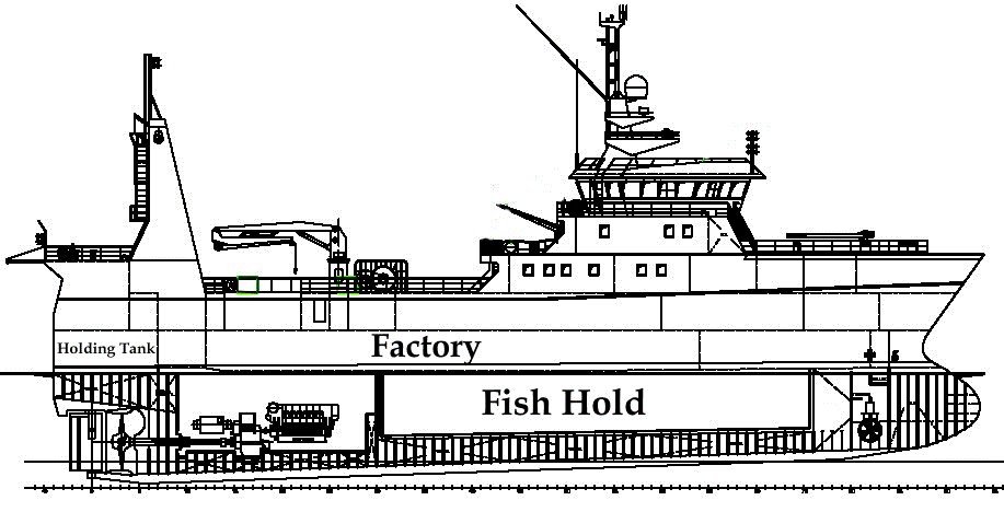 The Katsheshuk II was built in Norway in 1995 as a single-screw stern trawler of all-welded steel construction (photo 1). The navigating bridge and crew accommodation are located forward, and the engine room is located aft. The vessel’s shrimp-processing factory is situated one deck above the fish hold (Appendix A). The hull is subdivided by 5 transverse watertight bulkheads. A watertight inner bottom, enclosing double-bottom tanks, extends the length of the fish hold, while the hull in way of the engine room is of part double-bottom construction.