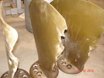 Further inspections undertaken after the vessel arrived in St. John's in early November found that the bow thruster propeller blades had sustained extensive mechanical damage, most likely caused by rocks being sucked through the thruster tunnel after the grounding and jamming the blades (Photo 4). The main propeller and stern thruster propellers were also found to have sustained some mechanical damage.