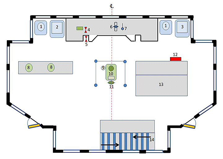 | 4 | 0958 | Chief engineer (CE) arrives in engine control room, performs blackout procedure, which interrupts power to the bridge and activates numerous alarms. | 034 | 025 | 5.2 |