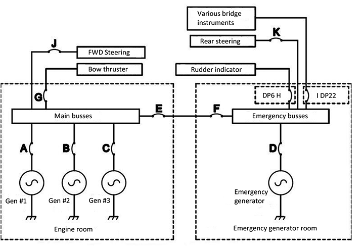 Note: The main busses are part of the main switchboard and the emergency busses are part of the emergency switchboard.