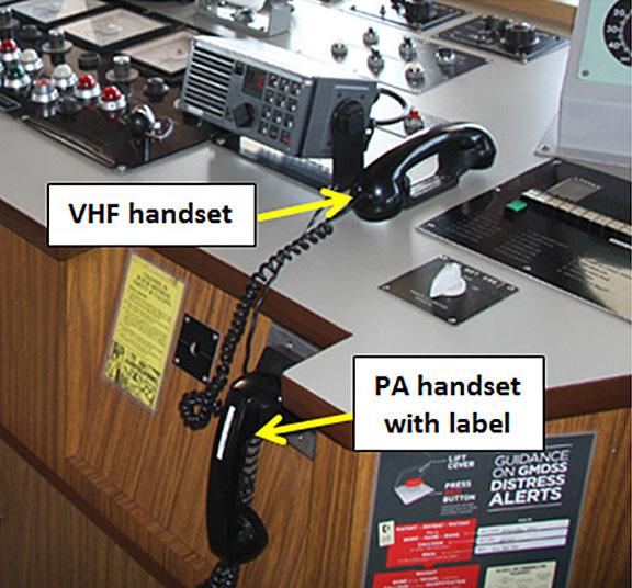 - The public address and the very high frequency handsets on the bridge central console are similar in appearance, are located close together, and had been mistaken for one another in the past.