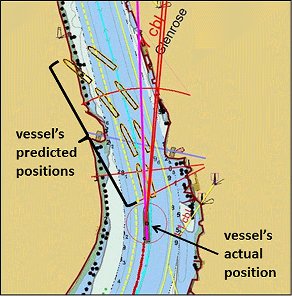 - The predictor function was using input from the automatic identification system that was inexact due to the global positioning system smoothing interval, but the pilot was unaware of this.