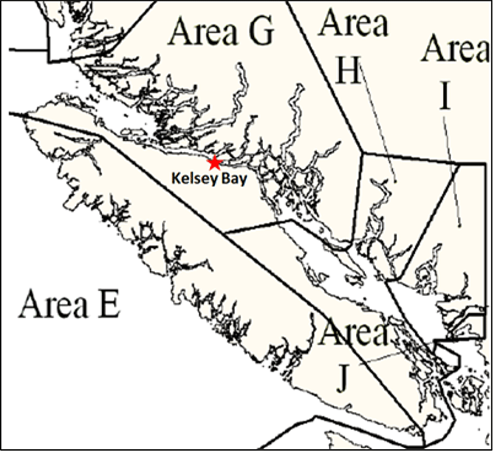 On 10 June 2014, the master of the Five Star and 1 crew member departed Kelsey Bay, British Columbia, on a crab fishing voyage within the Department of Fisheries and Oceans (DFO) crab management Area GFootnote 4 (Figure 1). On 12 June, after 3 days of crabbing, the Five Star departed the grounds at approximately 1400,Footnote 5 bound for Kelsey Bay with a catch of crabs estimated at 1250 kg.Footnote 6 The crabs were dispersed in 22 holding cagesFootnote 7 stowed on the working deck.