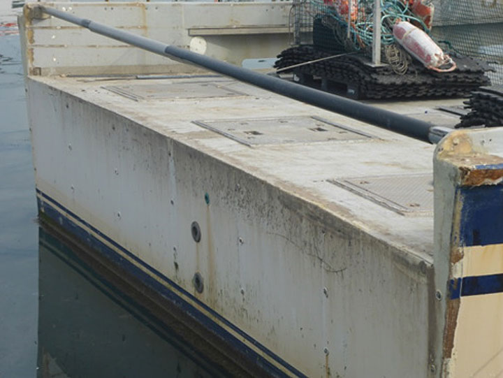 While the majority of fishermen on these types of vessels leave the stern open while fishing lobster, some will place a chain or aluminum pole across the opening to act as a guardrail (Photo 4). Poles can be adjustable and can be placed in numerous orientations across the deck so that the crew members are never nearer the open stern than they have to be. Additionally, crew members can place the pole between themselves and the open stern when preparing traps for setting, which maintains a physical barrier.