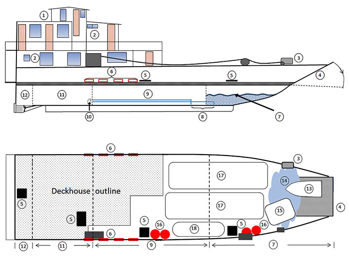 - The main deck, which had recently been partially replaced, was not watertight and allowed water to downflood into the forward storage compartment.