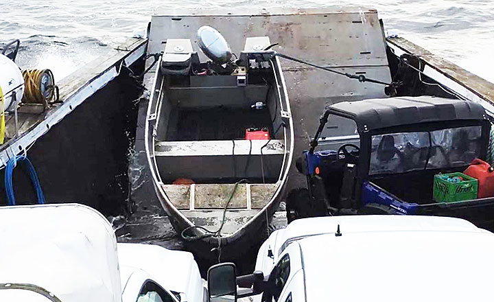 On 13 March 2015, the master, the AR, and a couple of workers loaded the Lasqueti Daughters in preparation for the upcoming silviculture operation,Footnote 7 which included the transportation and housing of silviculture workers. All necessary equipment was stowed on the main deck, including a skiff, 2 pickup trucks, an all-terrain vehicle, and 20 000 tree seedlings, lowering the vessel's bow to an even keel. In addition, the vessel was towing a 12-passenger workboat.