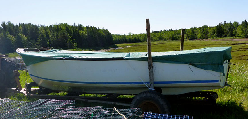 The vessel had a watertight raised fibreglass deck. A small console with steering and engine controls was fitted in the wheelhouse, and a gasoline-operated hydraulic hauler was fitted at the stern. A steel lobster trap boom fitted with a 10-inch plate hauler and 2 rollers (Appendix B) was mounted on the starboard side approximately 0.5 m from the stern.