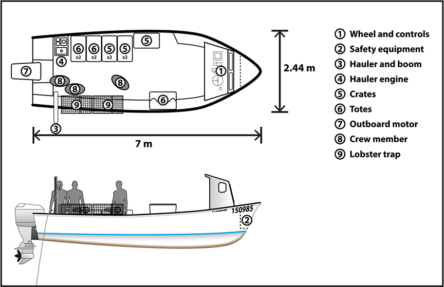 | Cargo | Crates, tote boxes, lobsters, gasoline fuel, bait, fishing gear |