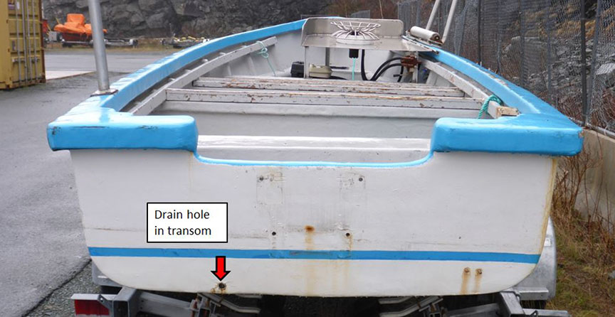 The drain hole is 35 cm to port of the vessel's centreline, and is just above the vessel's inner bottom but below the waterline. To drain any water that has accumulated on board, the crew would normally accelerate the vessel until it was planing. The forward motion of the vessel and raising of the bow when planing forces the water on board to flow aft, toward the vessel's transom. When the drain hole plug is removed, the water accumulated at the stern then drains out of the drain hole until the plug is reinserted.