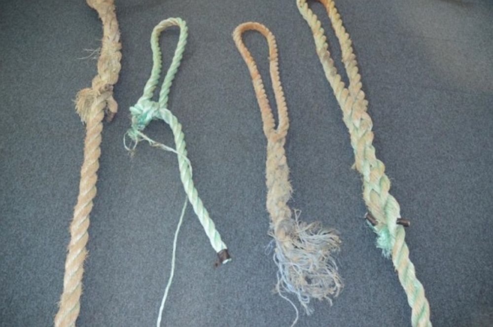 - The synthetic fibre ropes were in poor condition.