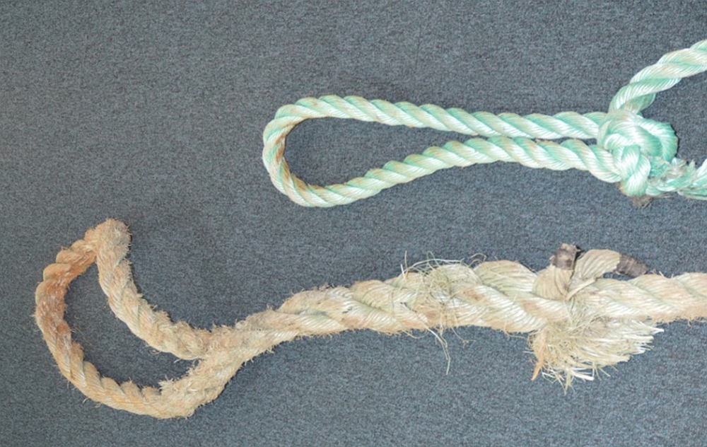 - Short, 3-strand synthetic fibre ropes (copolymer and polypropylene) were used.