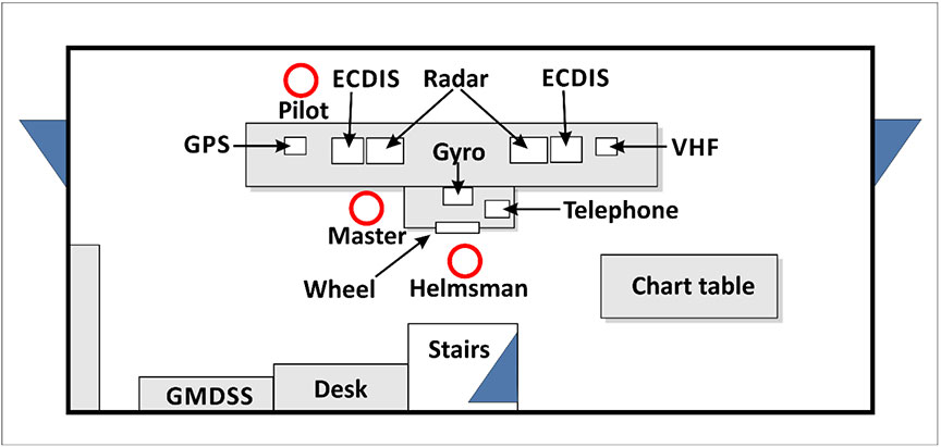 At the time of the occurrence, the bridge team consisted of the helmsman, the master, and the pilot; the officer of the watch was not on the bridge. The helmsman was at the wheel, and the master was on the left side of the console and was monitoring the radar and ECDIS. The pilot had positioned himself ahead of the console, facing the wheelhouse windows, and was unable to see the vessel's ECDIS or the radar. From his position, the pilot ordered various manoeuvres. The pilot did not request information regarding the vessel's progress, and this information was not offered by other members of the bridge team or the crews of the tugs.