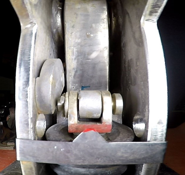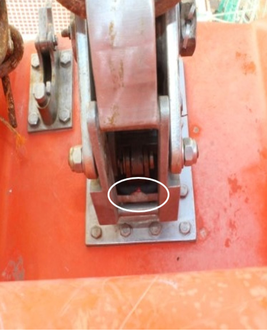 The end links used in this occurrence were part of the originally fitted davit, and had a cross-section diameter of 28 mm.