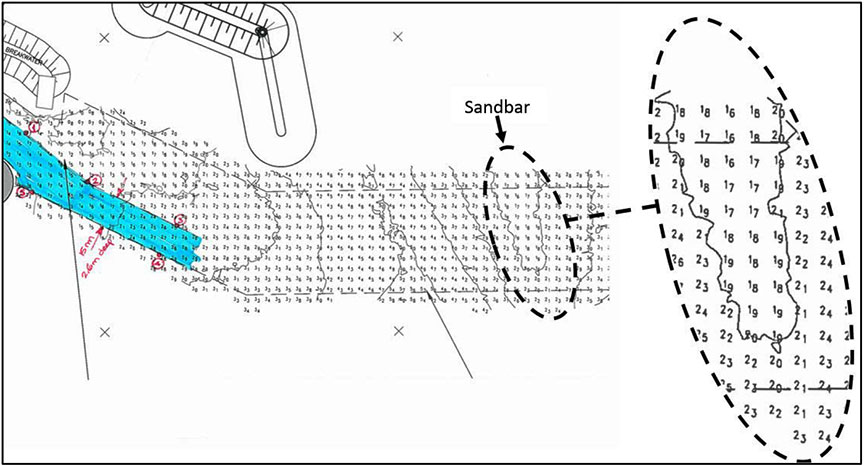 Sailing directionsFootnote 3 issued by Fisheries and Oceans Canada (DFO) indicate that channel depths (figures 3 and 4) are obtained by routine dredging, and that, due to continual silting, mariners are cautioned that they may find less water than expected.