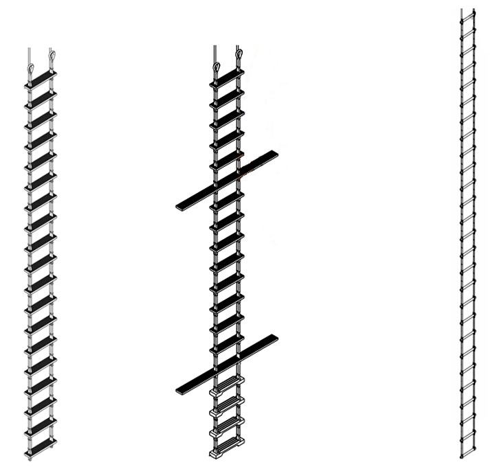 A Jacob's ladder (also known as a monkey ladder) is a flexible hanging ladder composed of vertical rope or chain and horizontal wooden or metal rungs. This type of ladder is commonly found and used for various applications throughout the marine industry.