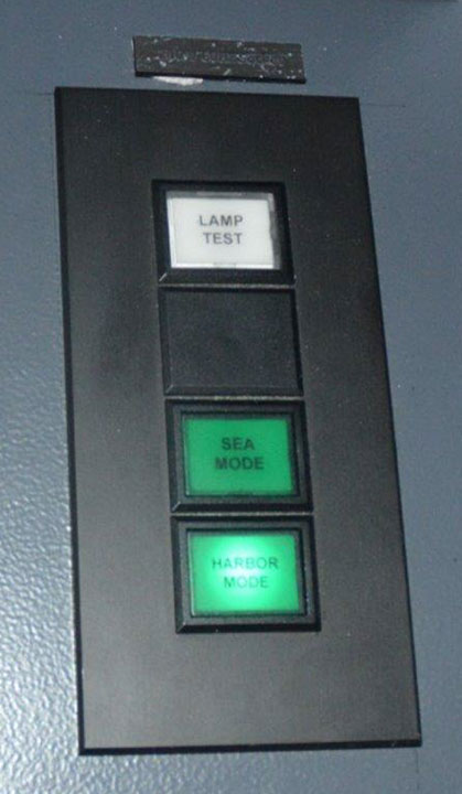 The vessel has autopilot and 2 manual steering controls (wheel and pod). Both autopilot and the 2 manual steering controls have 2 modes: harbour and sea (Figure 5). Sea mode is usually used for transiting in open waters; harbour mode is used for manoeuvring in restricted waters and berthing. When the vessel's speed exceeds 8 knots, the harbour/sea mode alarm sounds to alert the master that he or she has the option to put the vessel in sea mode. When autopilot or pod steering control is used in sea mode, the pods are restricted to moving ±30° from the centreline.Footnote 16