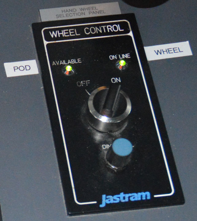 The design of the labelling above the wheel control switch was not intuitive. As well, both green LED lights were illuminated when the steering control was set to the wheel, which could lead to confusion, given the location of the wheel and pod labels.
