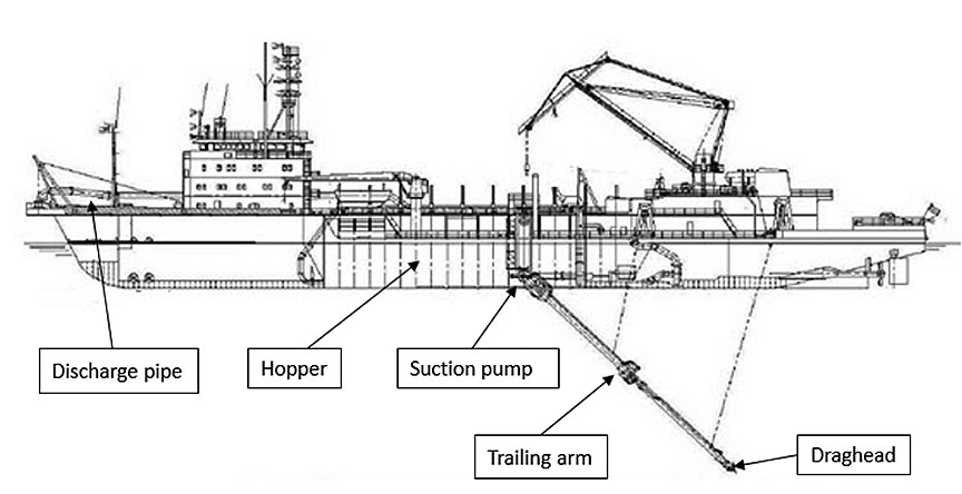After arriving at the designated dredging location, the vessel began dredging sand and sediment from the river bed into the hopper using the 2 trailing arms and a dredging pump. When the hopper was filled, the sand and sediment was pumped ashore via a pipeline. The master left the bridge at approximately 2100, handing over the command of the vessel to the officer of the watch (OOW). Two engineers, 2 deckhands, and a pipe operatorFootnote 2 were also on duty.