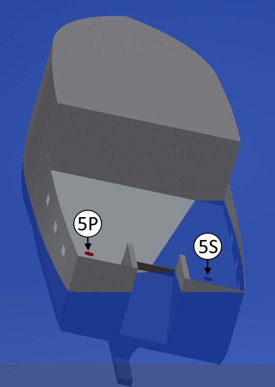 Aft of the bridge was the shelter deck, which was equipped with 2 trawl winches and a net drum. Roll-dampening paravanes were installed on either side of the deck.