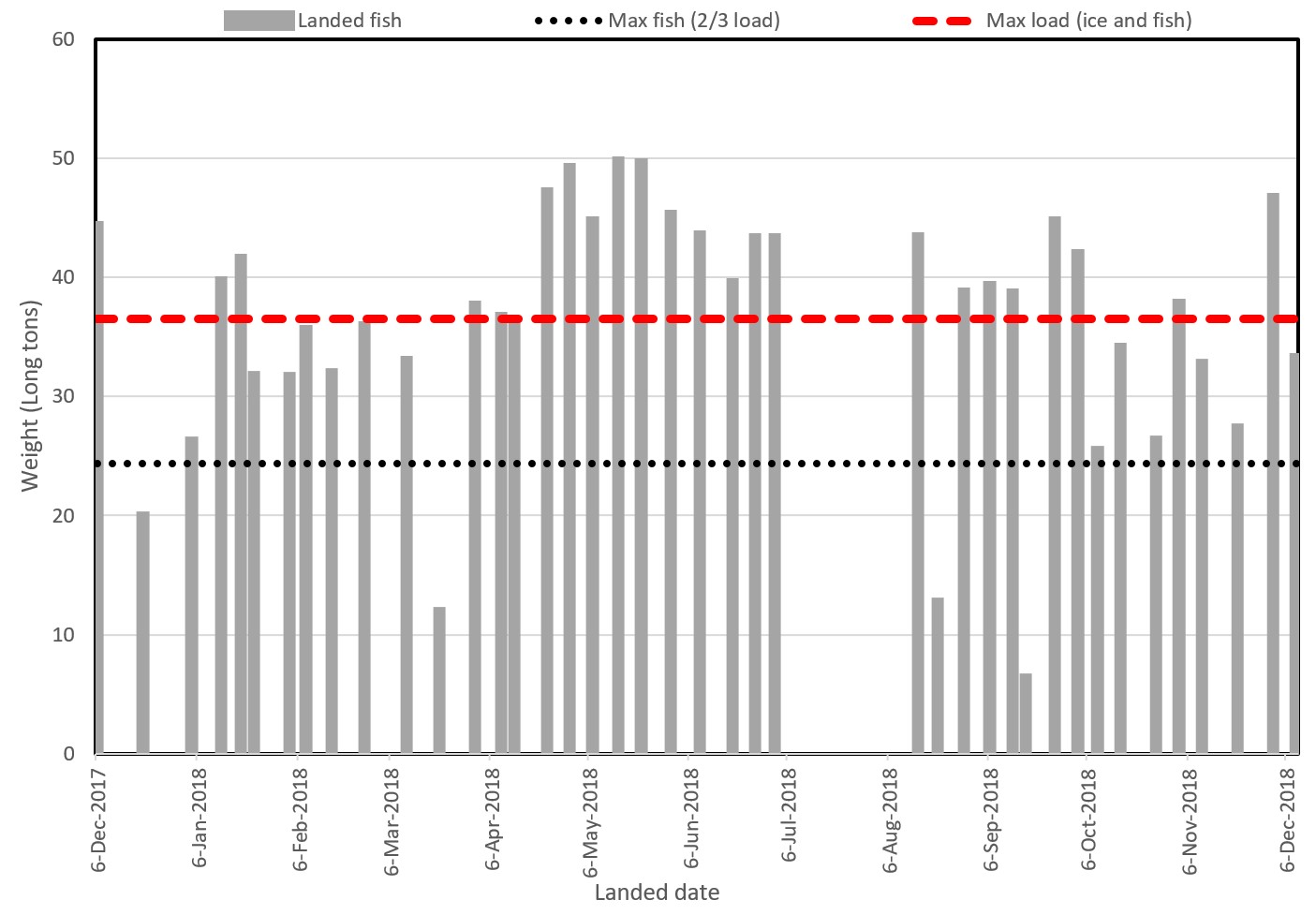 In the case of the Atlantic Sapphire, the vessel had been routinely overloaded for the past several years, dating back to 2013. Although the Atlantic Sapphire was inspected in 2016, there was no verification that the vessel’s landing history was within the stability booklet’s limitations. As a result, the vessel continued operating in the same manner until the time of the occurrence.