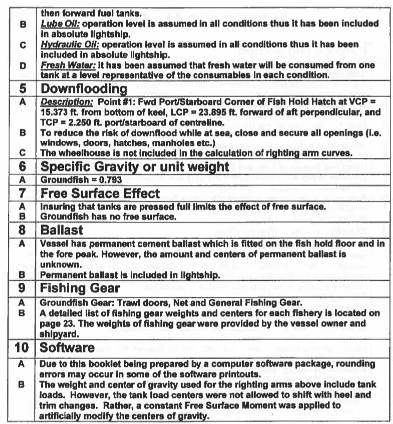 The stability booklet also identified the vessel’s downflooding point as being the forward edge of the non-watertight main hatch, when all other hatches were closed and secured.