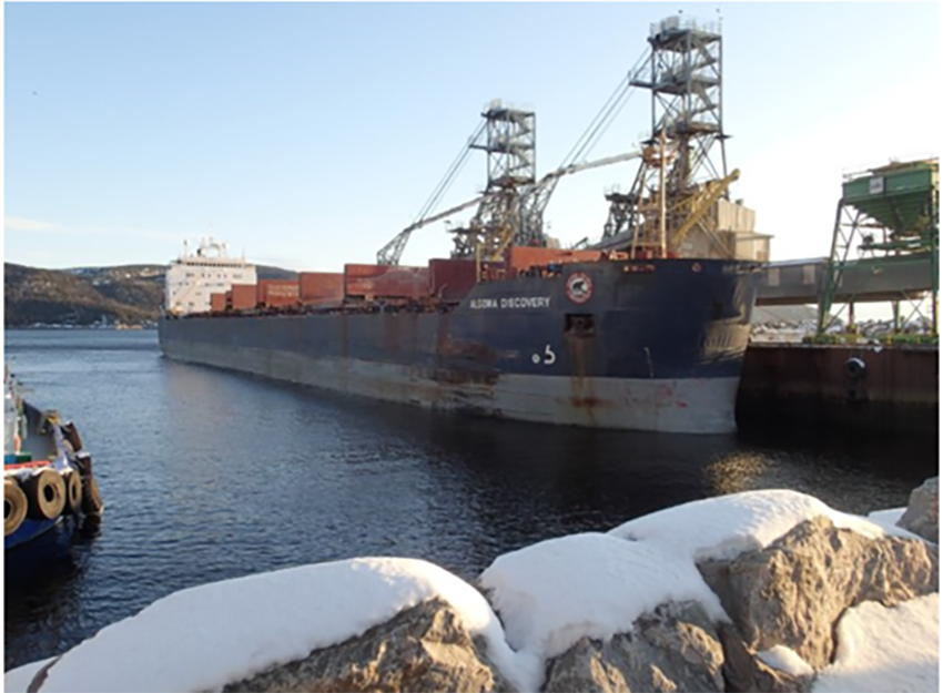 The Algoma Discovery (International Maritime Organization No. 8505848; Figure 2) is a 222.4 m-long and 23.14 m-wide bulk carrier, registered in Canada and owned by Algoma Central Corporation. The vessel was built in 1987 and is equipped with a controllable pitch propeller and a bow thruster.