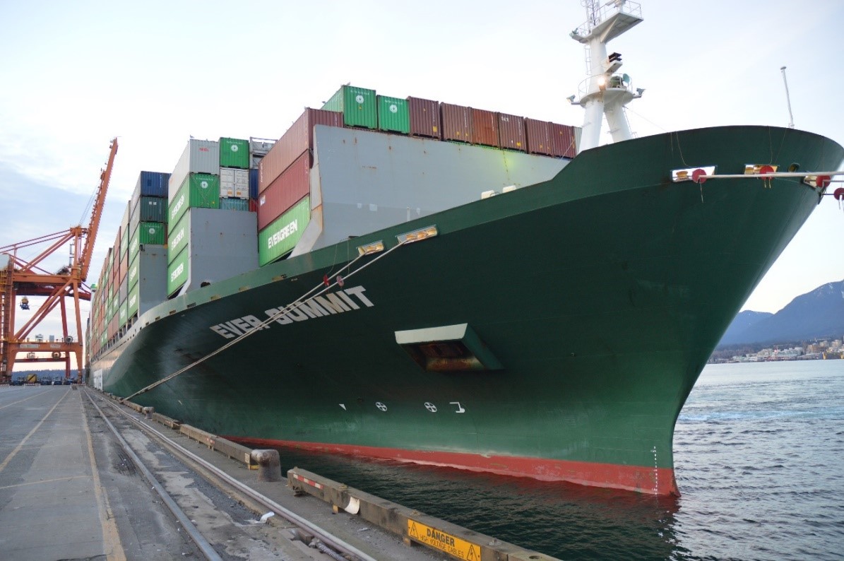 Over the past decade, there has been a substantial increase in the size of container vessels worldwide, as well as those calling at container terminals in the Port of Vancouver. Larger container vessels have greater scantlings, deeper drafts, heavier displacements, and higher freeboards. As well, the hull at the waterline of newer container vessels tends to be more sculpted and finer form compared to traditional designs. This creates larger flares at the bow and stern, which necessitate approaches to the berth that are near parallel or “flat”, with very little tolerance for error.