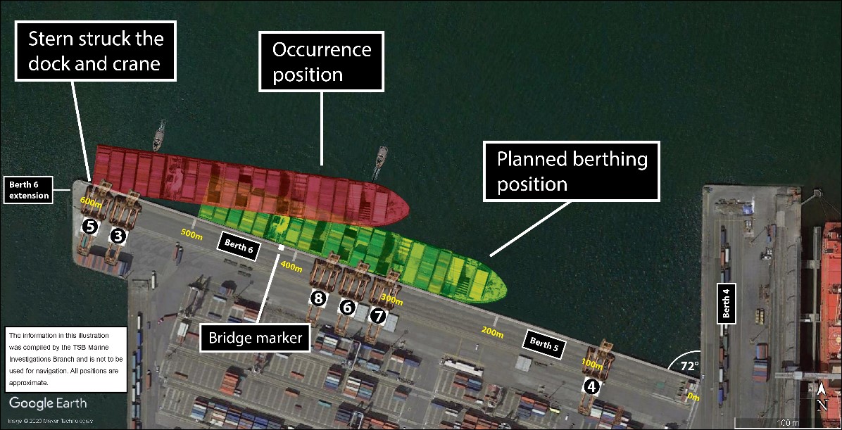 - The vessel transited the berth approximately 10 m off, an approach which limited the time to respond to any deviations during the berthing manoeuvre.