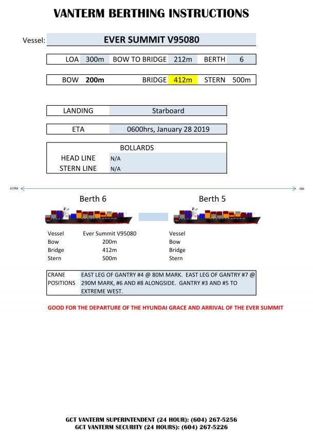 Appendix B – Vanterm berthing instructions for the Ever Summit