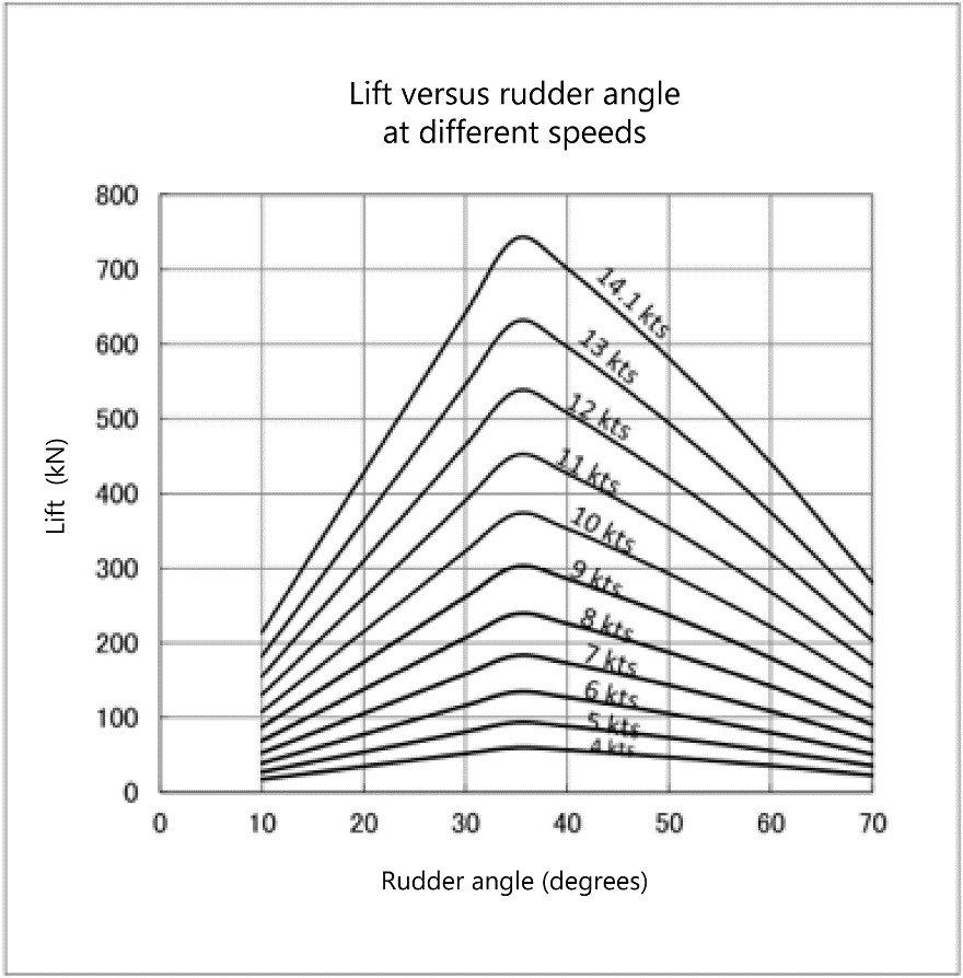 Information about the decline in lift force at rudder angles greater than 35° was unavailable on the Florence Spirit, and both McKeil Marine and the bridge team were unaware of this phenomenon. It was common practice for the bridge team to apply rudder angles greater than 35° while the vessel was proceeding above 4 knots, and rudder angles of up to 70° were applied just prior to the occurrence while the Florence Spirit was proceeding at speeds in the range of 9 knots as part of evasive action to try to avoid the collision.