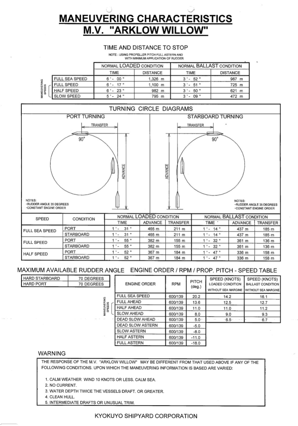- Conducted rudder timing and efficiency tests on company vessels and updated the vessels’ manoeuvring characteristics posted on the bridge
