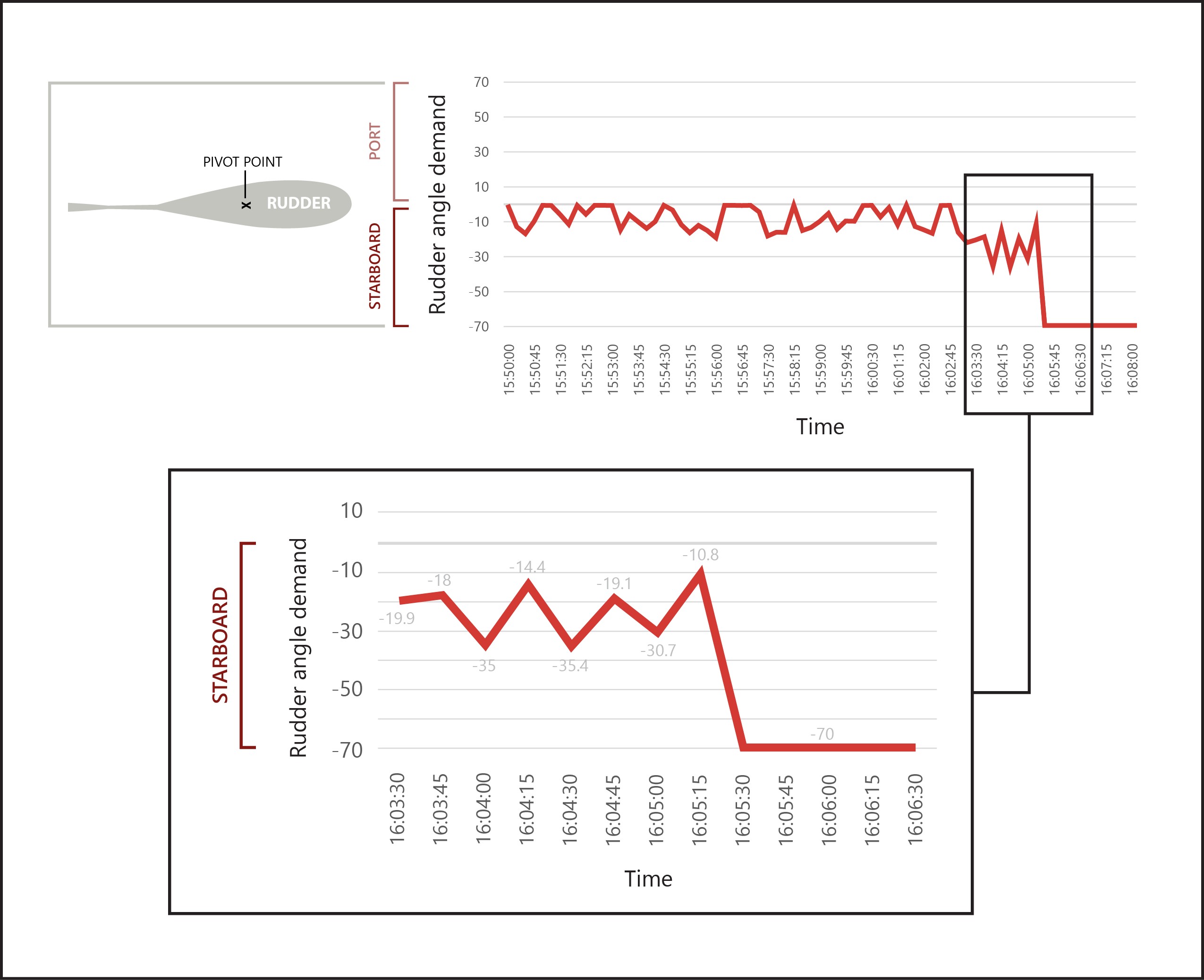 Appendix B – Schematic showing rudder angle demands on the Florence Spirit in the 13 minutes before the collision