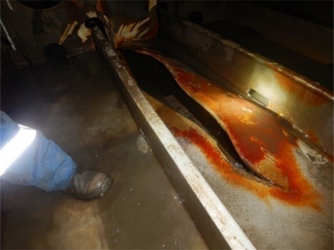 Figure 3. Damage to the vessel, viewed from the exterior (Source: Coastal Shipping Limited)