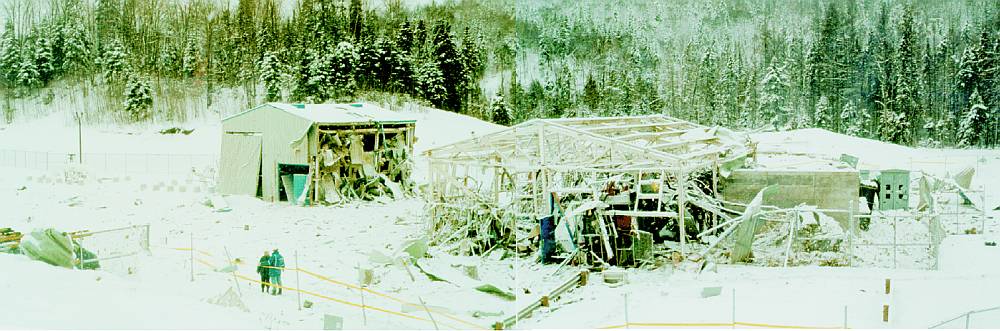 An initial site investigation immediately following the accident indicated that a natural gas explosion had occurred in the ESB. The epicentre of the blast was located in or adjacent to the emergency generator and electric heating and ventilation system located at the back of the building. The ensuing explosion and fire damaged the ESB and other buildings in the station. Natural gas had migrated into the ESB in sufficient quantities to create an explosive mixture that had ignited, probably by a spark from an electric device in the epicentre of the blast.