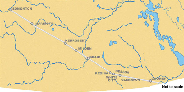 Line 2 operates continuously out of Edmonton with intermediate injection and delivery locations at Hardisty, Alberta and Kerrobert and Regina, Saskatchewan. The pipeline consists of 1242 km of 610-mm outside diameter pipe of varying wall thicknesses. It transports batches of crude oil of varying viscosities. Just prior to the leak, Line 2 had been shut down as part of normal operations from 0030 to 0230.