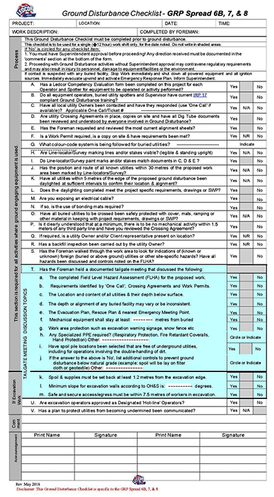 Appendix B – Ledcor Pipeline Limited's ground disturbance checklist