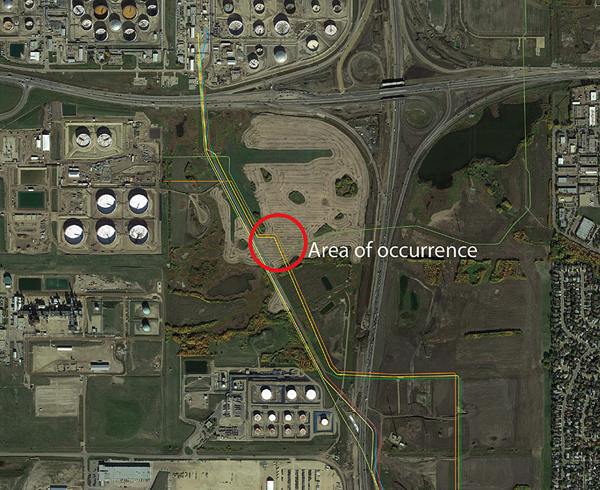 On 15 February 2017, a section of a new 20-inch (nominal pipe size [NPS] 20) pipeline approximately 200 m in length was being installed for Grand Rapids Pipeline GP Ltd. (GRP Ltd.).Footnote 1 The pipe was being laid in a pipeline corridor located in a petrochemicals industrial area in Sherwood Park, Alberta (Figure 1), and was part of the new Grand Rapids Pipeline (GRP) system.Footnote 2