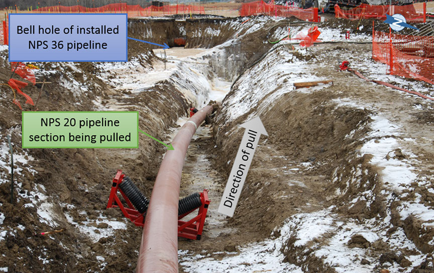 A drilling rig that was in the process of pulling the NPS 20 pipeline section was positioned at the west end of the western corridor (Figure 6).