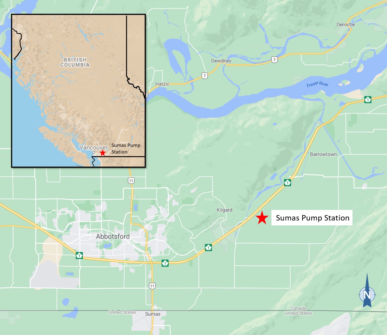 The Sumas Pump Station is located in Abbotsford, British Columbia. It services the Trans Mountain pipeline, which is regulated by the Canada Energy Regulator. The Trans Mountain pipeline transports petroleum crude oil and refined petroleum products from Edmonton, Alberta, to refineries and terminals in British Columbia and the state of Washington, United States.