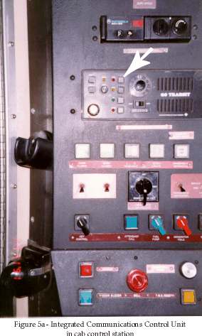 To select a communication system, one of the four push buttons (see Figures 5a and 5b) must be depressed. The corresponding LED indicator will illuminate, showing which communication system is activated and being controlled by the ICCU.