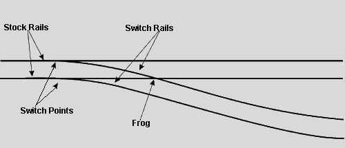 The crossover at Mile 127.54 was designed to permit a maximum speed of 45 mph for diverging movements. It was built with No. 20 turnouts equipped with Samson switches. Figure 1 illustrates a turnout and some of its major components.