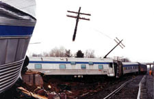 - VIA 8228 (sleeper car) derailed and came to rest upright on an angle to the main track.