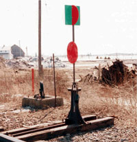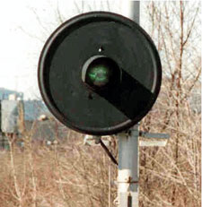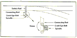 between the lateral movement of the switch handle and the change in aspect of the switch target and mast. As the mast is rotated 90 degrees to move the switch points from the normal to the reverse position, the target attached to the mast and spindle moves to the same degree. The design of the switch stands and their associated targets dates from the early 1930s.
