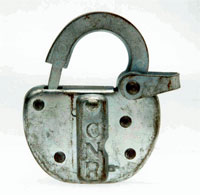 The use of high-security switch locks (Figure 11) was one outcome of The VIA Passenger Train Speed Inquiry (Railway Transport Committee, 1985). This inquiry was prompted by an act of vandalism to a main track switch in June of 1984 on the Smith Falls (Ontario) Subdivision of CN which caused a derailment of a VIA passenger train. Subsequent to the accident, and a show causeFootnote 4 order (Order No. R-39612) issued 25 July 1986, CN implemented the widespread use of high-security switch locks in non-signalled territory, and on signalled territories that were historically prone to switch vandalism. In 1986, Order No. R-39910 governing high-security switch locks was issued to Canadian Pacific Railway Company Ltd. (CP). This order required high-security switch locks be installed on manually operated main track switches on: