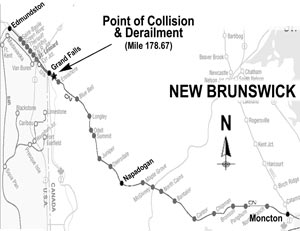 The Napadogan Subdivision consists of a single main track that extends from Pacific Junction, New Brunswick, (Mile 0.0) to Edmundston (Mile 219.4). Train movements were governed by the Centralized Traffic Control System in accordance with the Canadian Rail Operating Rules and were supervised by a rail traffic controller located in Montréal, Quebec.
