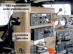 The railways are implementing methods to control in-train forces during emergency braking. For instance, CN has issued a directive in timetable 78 requiring the application of the emergency brake from both the locomotive and the tail-end. This is achieved by placing the automatic brake valve in the emergency position, and actuating the emergency toggle switch on the locomotive stand (see Photo 4). Also, at thetime of this occurrence, CN was testing an end-of-train system that automatically initiates synchronous braking from both the locomotive and the tail-end during emergency and service applications. Some railways in the United States have already equipped their trains with such systems.Footnote 11 As of 01 November 2001, the AAR requires all new locomotives be equipped with automated end-of-train devicesFootnote 12 to comply with FRA Regulation 49 CFR 232.405, Design and Performance Standards for Two-Way End-of-Train Devices.Footnote 13 The FRA regulation requires all locomotives ordered on or after 01 August 2001, or first placed into service on or after 01 August 2003, to be designed to automatically initiate a simultaneous emergency brake application at the head and tail end of the train whenever the locomotive engineer places the train air brakes in emergency.