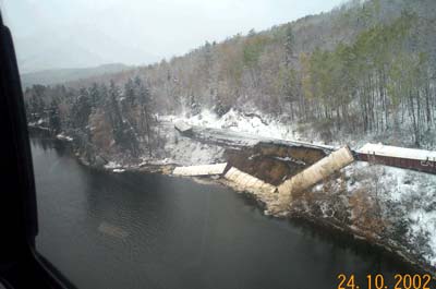 Track geometry is checked three times a year by the track geometry car, and the rails are ultrasonically inspected for internal defects twice a year. The last rail inspection was done on 11 June 2002, and no defects were found. No rail defects were found on the last bi-weekly inspection done by the track supervisor in a Hi-rail vehicle on 22 October 2002.