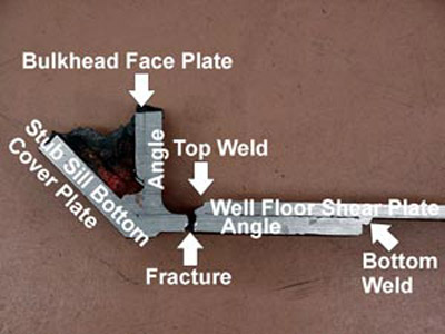 - The principal failure occurred in the steel angle along the lower front edge of the well. The failure of the side sills was a secondary failure.