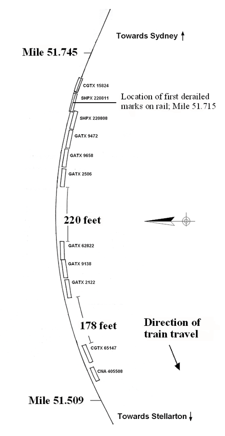 Appendix A – Schematic identifying and showing the approximate position of derailed cars